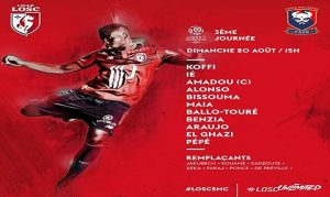 Lille : Hervé Koffi – Junior Alonso, Ié, Amadou – Bissouma, Thiago Maia, Benzia, Ballo-Touré – El-Ghazi, Pépé, Luiz Araujo.